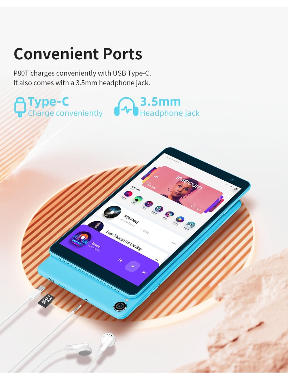 Dankzij Bluetooth 5.0 koppel je eenvoudig draadloze oordopjes of speakers. De dual-band WiFi (2.4GHz en 5GHz) zorgt voor snelle en stabiele verbinding.