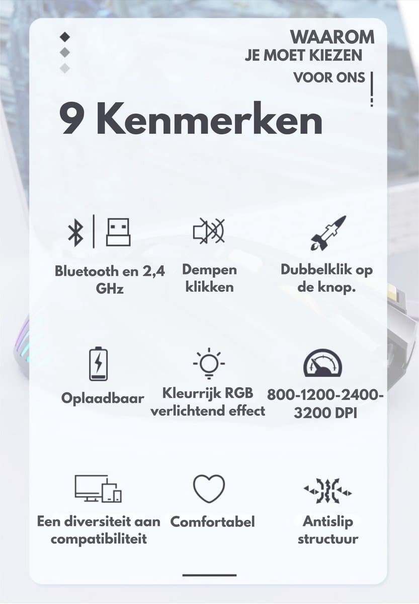 - Verbindingstype: 2.4GHz draadloos + Bluetooth