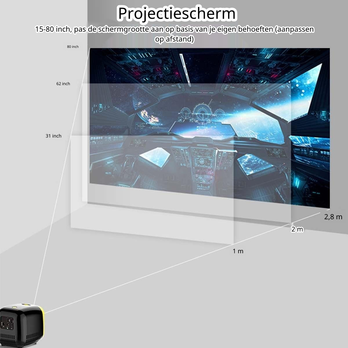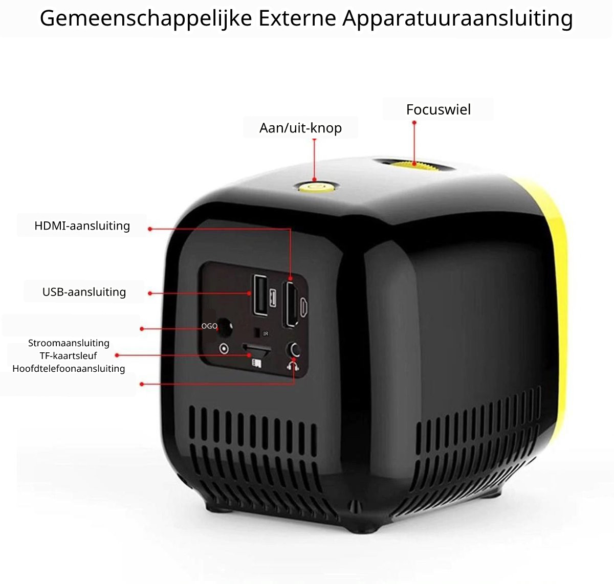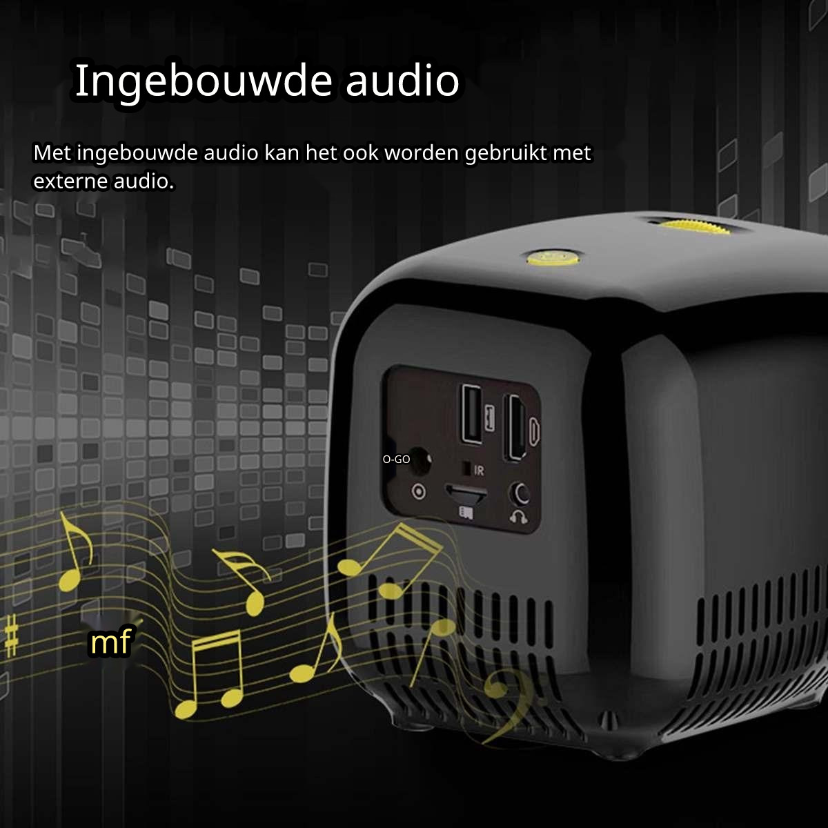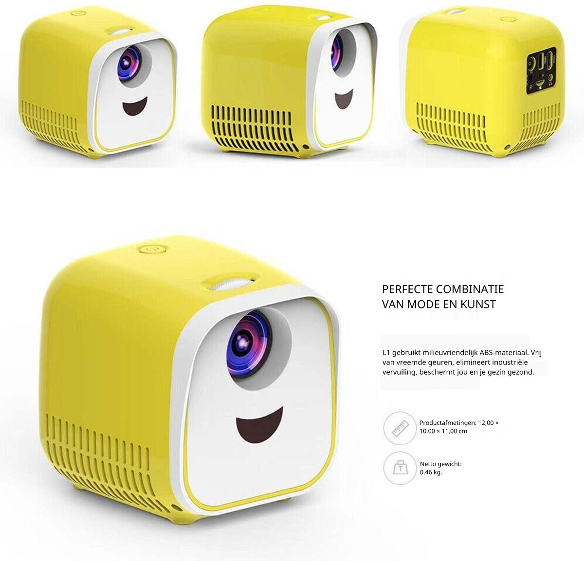 Door het kleine formaat van de beamer is het mogelijk om de beamer overal mee naartoe te nemen. Door het lichte gewicht kan de beamer gemakkelijk in je tas. Ondanks het kleine design is de projectiegrootte 80 centimeter.De beamer ondersteunt 1080P HD-resolutie met 1000 LUMEN wat het mogelijk maakt om foto’s en video’s in mooie kwaliteit te bekijken. De beamer heeft ook ingebouwde speakers.
